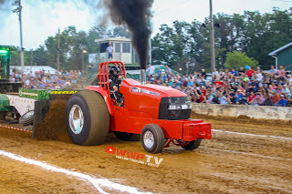 Ricky Tavenner holds the banner high for Case IH in the Light Limiteds and Light Pro Stocks as we run them in Virginia. Ricky hales from Berryville and he drew the luck of the night. First and earlier hooks seemed to be the winning hook number for this event. Pullers get to roll a lottery style cage with numbers and the lowest one goes first. Ricky took his Case IH MXM175 some 328.54 to start the class. The next hook was another Ace Chassis from Mike Stinson just outside of Nashville Tennessee in Steve Flint and his "Headcase" Case IH MX285. Steve likes his tractor a little bit nose heavy and on this night it managed a distance of just 304.88. I never take phone calls during pulls. Well, there was this one time when my wife called and said, "Get home, a tree fell on our house!" and on this night I received a call from a few pullers from Pennsylvania that said they were going to be late. The pull was an hour earlier than in years past. But still, I asked the promoters what they wanted to do. "Get em in here and unloaded!" So they show up, unload, fuel, and safety up themselves and get in line. The line didn't help them on this night as the pull order was decided already. Ted Ingram came next as the Blue Pullers from the north were driving into the pits. Not deterred by them, Ted went 312.63 on his "Acme Rocket" Ford 9600. Parran Bean came in on his "All About That Allis" Allis Chalmers D-21 and went 313.69. A very solid run for the pumpkin. Shane Scott from Shippensburg Pennsylvania came in on a New Holland TM130 and went 314.70. He's buying dinner for that team as it would land him a second place finish. The brothers from the north Matt and Mark didn't have their normal nights and I think it was due to the late placement in the running order in combination with their weight being less than optimal along with the stresses of arriving later than expected. Mark lost his smokestack clamps and let smoke out all over the place. So there you have it Ricky makes Berryville native winner number three.